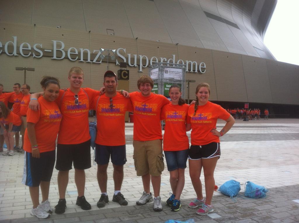 Today we went to the bayou…not the bayou, by you…but the bayou by us (read with southern accent). We took two buses down to the lower ninth ward, the hardest hit area by hurricane Katrina seven years ago in 2005. We cleaned up debris, over grown shrubs, and garbage in vacant lots. Along with the Trinity Friends in Faith crew a few neighborhood kids came to lend a hand with our valiant efforts to better the lives of the residence of the Lower Ninth ward. These kids quickly grew on all of Trinity Friends in Faith with their southern hospitality, kindness and willingness to lend a hand. The vacant lots are vacant because legal issues of who actually now owns the lots after most of the previous residents were killed by the rushing flood water of the Mississippi river behind the levee. One of the residents we talked to had not had neighbors till 3 weeks ago. After all the debris, shrubs, garbage, and don’t forget the overgrown Bayou was cleared from the lots you could see the broken foundation of the house. You could distinctly tell where the kitchen, living room, bathroom, and bed rooms where. Then you start thinking about the family who lived there at the time, were they killed in the flooding water after the levee broke right outside their front door or had they survived and never wanted to come back to what used to be. We ask that you keep not only the citizens of New Orleans, but the 36,000 citizens with the saints that have lent a willing hand to practice Justice in your thoughts and prayers!