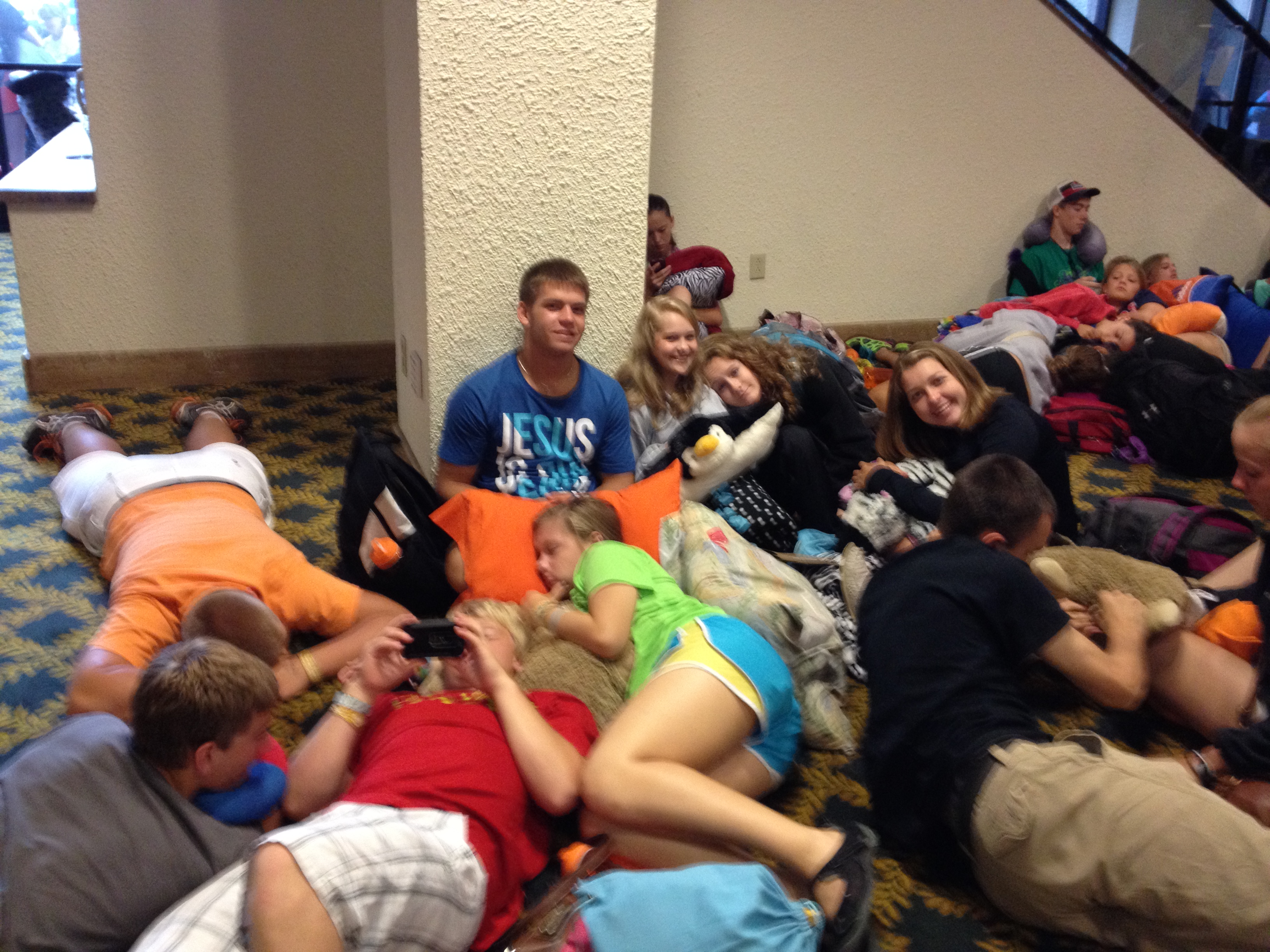 Hello our wonderful families! Will Thom says hi mom and dad! As we begin our journey back home, we reflect on our time in Nawlins, that can be summarized in three words: awesome, inspirational and fantabulous! It is safe to say we have all thoroughly enjoyed our time here. This morning we went to Worship service in the dome, where we sat up in highest section possible. Holy Communion was quite a sight, with 33,000 people in one place. We could all feel united as one, as we looked down at everyone feeling the same as us. Being so high up ended up being a great thing, as then no one else could see many of us bawling our eyes out with the idea of sending off 24 seniors in two days, along with Rachel going to South Africa and Laura to Jerusalem. At the end, the Detroit Choir came out and sang a gospel version of “Lose Yourself,” orginially done by Eminem. The announcement was made that the 2015 gathering is to be in Detroit, MI. We then began our long bus ride home. The hours were mainly filled with all of us sleeping in a coma, catching up on all the sleep we chose not to get in New Orleans. We celebrated John Deelstra’s 18th birthday today and we’ll celebrate Kathy’s birthday tomorrow! What more could you want than worship in the dome, a seven hour bus ride and a shake from Sonic! That’s a FiF birthday to remember! At the end of the day, in the Hampton Inn in Little Rock, Arkansas, we gathered one last time for evening large group. There, we sang our favorite songs and shared some great and memorable stories. We laughed together during the funny moments, and reflected during the God moments. We are all looking forward to tomorrow morning’s breakfast( there are Krispe Kreme donuts waiting for us!) and getting a great night of sleep! We will see you very soon:)