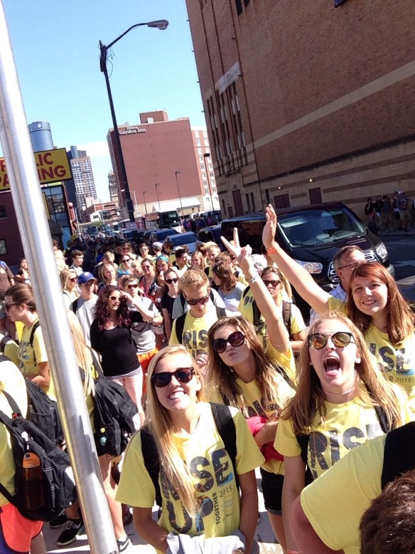 It was roughly 4 o’clock when we finally made it to the Cobo Center, in down town Detroit. We shopped around, met new friends and explored the building. It was a few blocks to walk to ford field where this awesome event would kick off! It was a struggle to wait to get in the stadium but to pass the time we started singing song, and more and more groups started joining in. We settled into our seats after what felt like hours. We sang our hearts out, danced to the songs, and listened to the speakers. Each one of us took something away from day one. Below are some great quotes from night one!