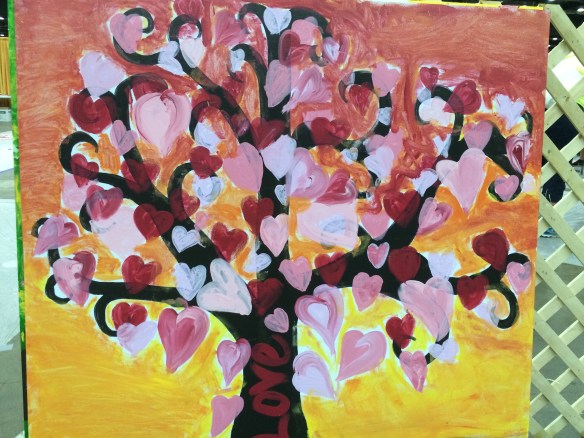Lily and others painted boards for the purpose of boarding up houses on our service day, Proclaim Justice, which is Saturday. This helps prevent vandalism to the abandoned and boarded up houses. The theme was love so they painted hearts as leaves on a tree with the word “love” on the trunk.